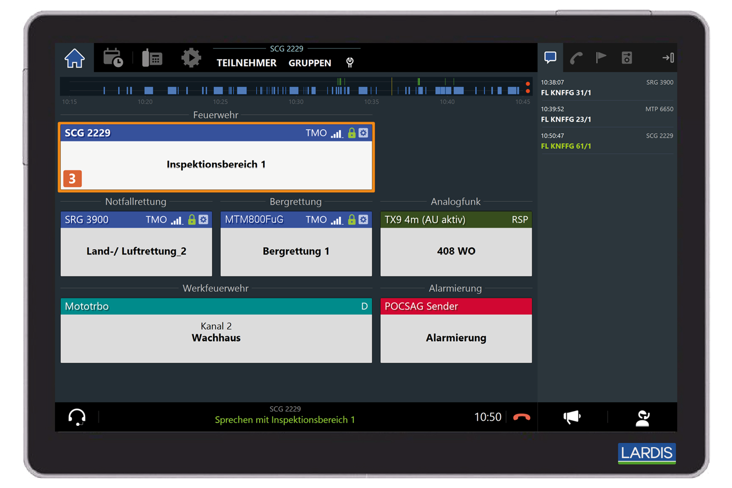 LARDIS bündelt die gesamte Kommunikation und Bedienung in einer Oberfläche. Das innovative Funkbediensystem steuert herstellerunabhängig Analog- und Digitalfunk, K-FUNK:SatPTT sowie VoIP-Telefonie – übersichtlich, intuitiv und zuverlässig.