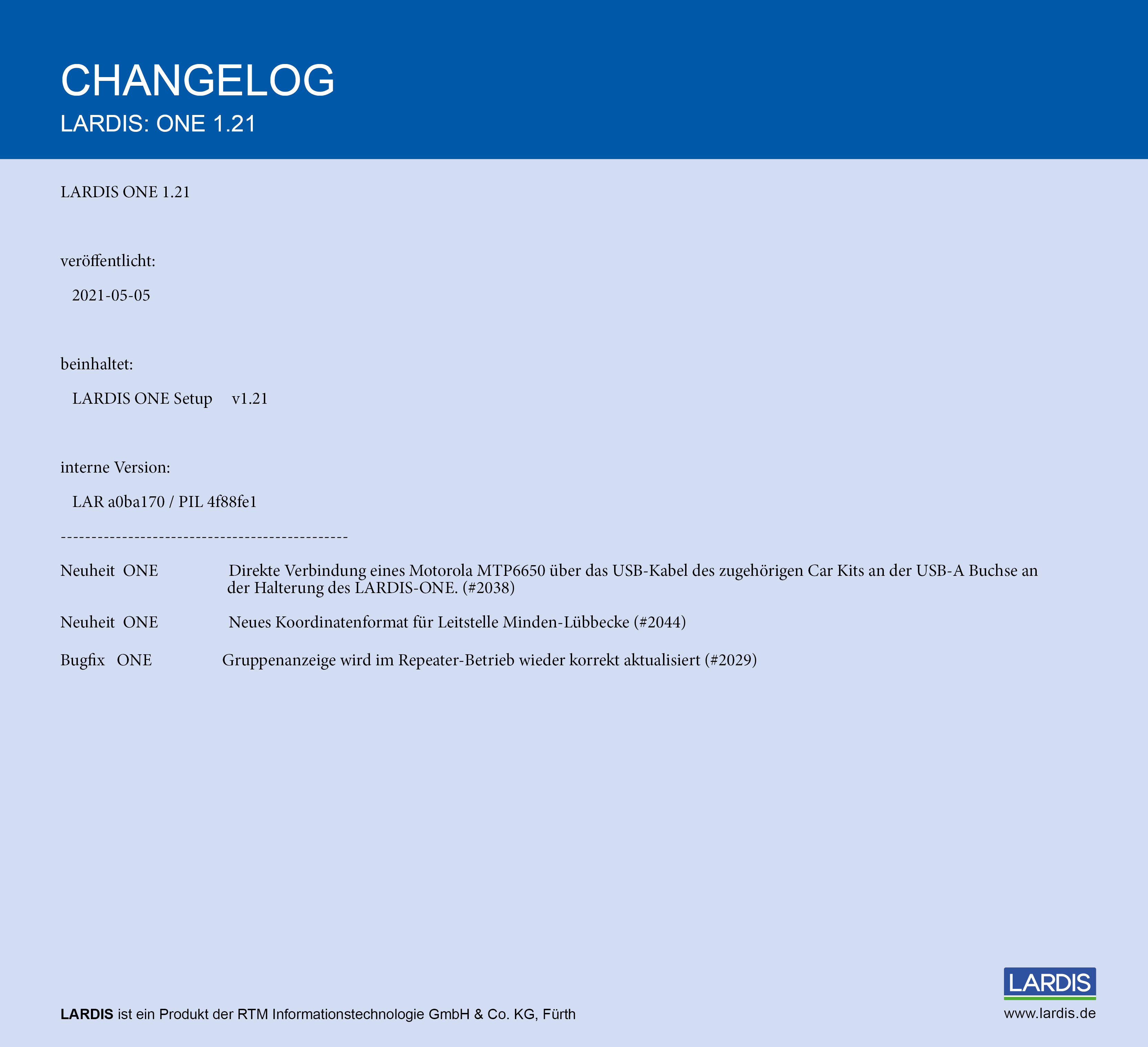 LARDIS:ONE Release V. 1.21.0